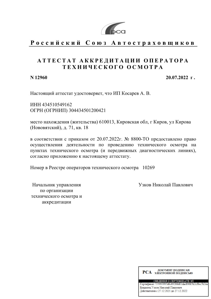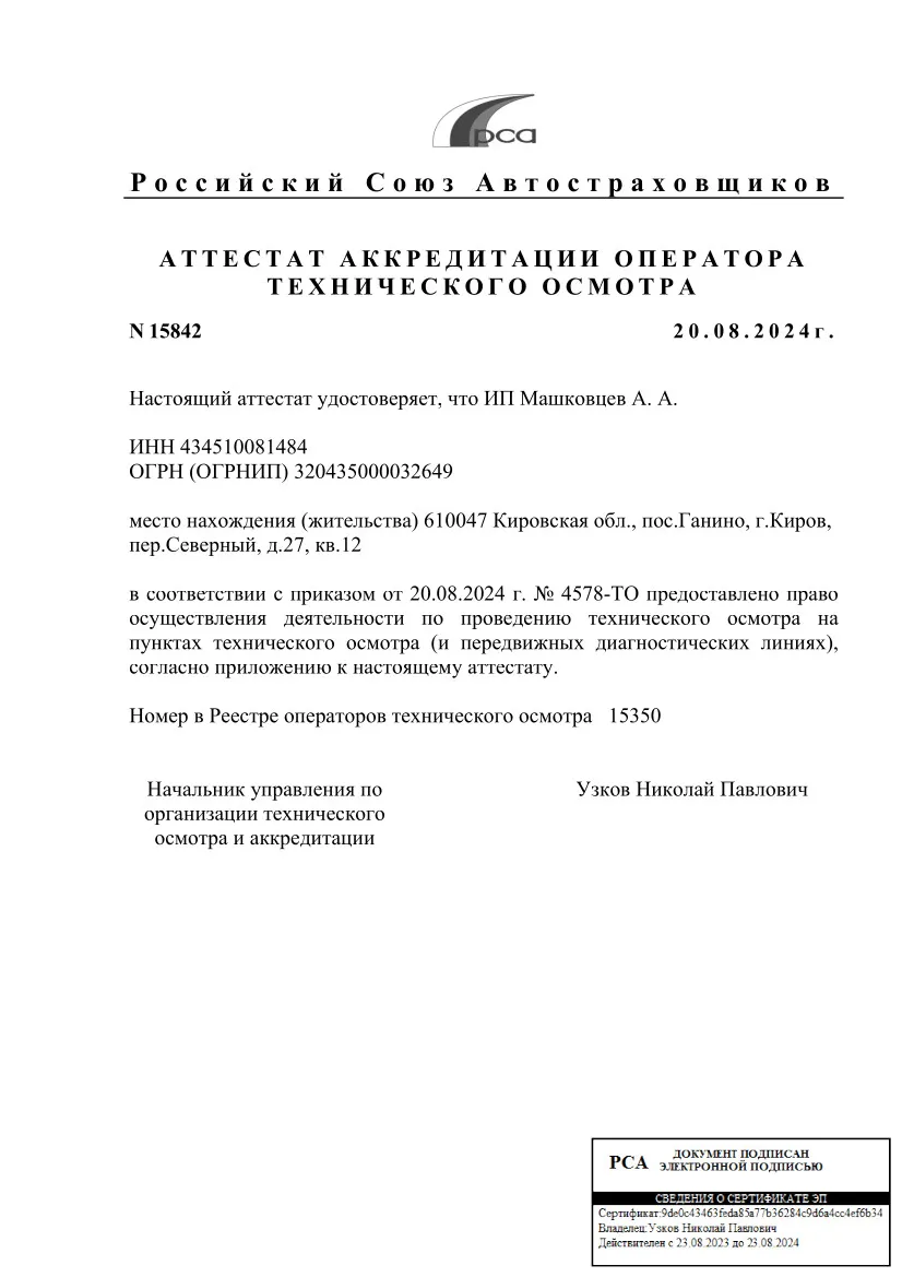Проводить технический осмотр с выдачей диагностической карты могут только организации, получившие официальный аттестат об аккредитации от Российского Союза Автостраховщиков.